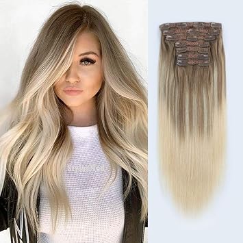Amazon Com Lovrio 9a Grade Clip In Human Hair Balayage Color Ash Brown Light Chestnut Brown Fading To Platinum Ash Blonde B8 60 Remy Straight Invisible Luxury Hair 22 Inch 120g 7 Pieces 18
