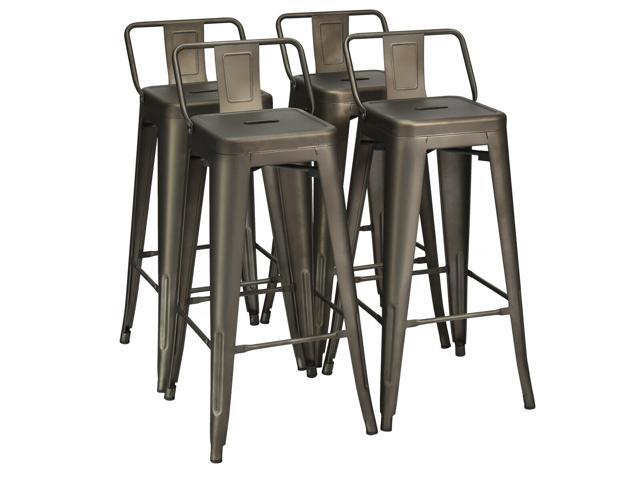 Set Of 4 Metal Bar Stools 30 Bar Height Barstools Industrial W Low Back Gun Newegg Com