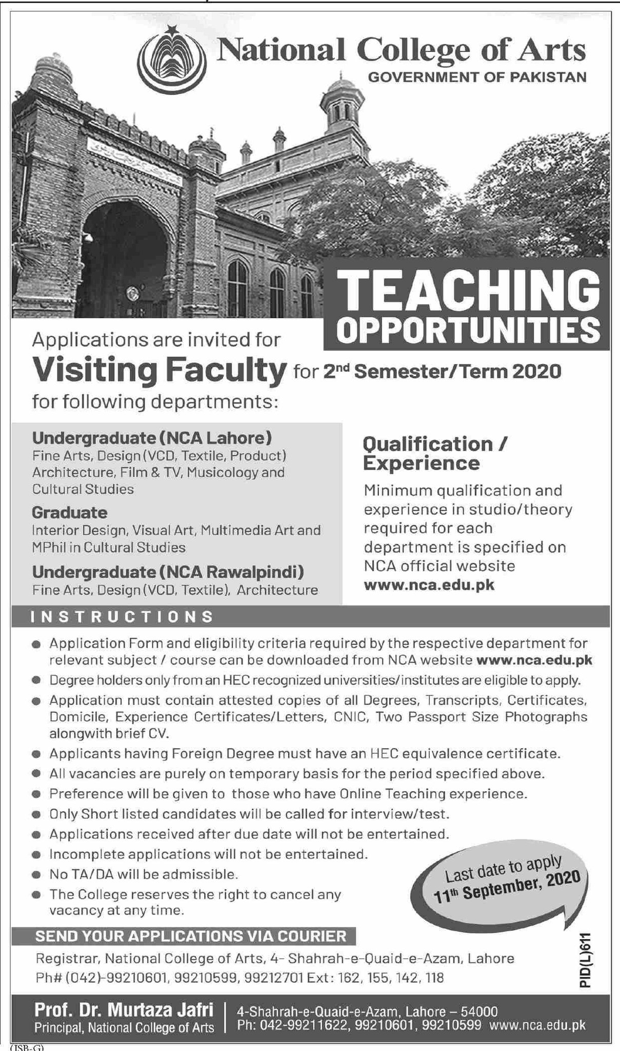 National College Of Arts Lahore Jobs Latest 2020 August Careers In Nca Lahore Punjab Daily Latest Jobs Daily Jobs In Pakistan From Leading Newspapers Latest By Kfr Com Pk Kick For Rise