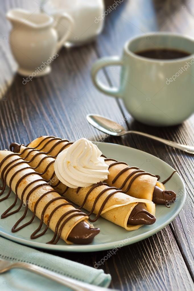 Nutella Chocolate Hazelnut Spread Dessert Crepes With Whipped Cream Stock Photo C Viennetta 128223712