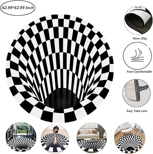 Amazon Com N Y 3d Carpet 3d Swirl Print Optical Illusion Rug Carpet Black And White Large Carpet Visual Whirlpool Experience Office Carpet Rug Non Slip Soft Foot Mat Cushion Furniture Decor