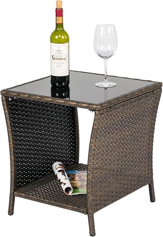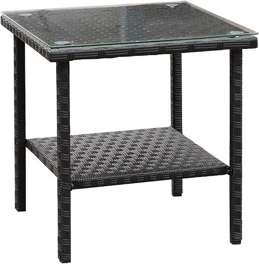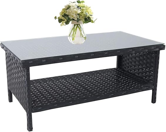 Amazon Com Outdoor Pe Wicker Coffee Table Patio Rattan Garden Side End Tea Table With Glass Top Furniture Black Garden Outdoor