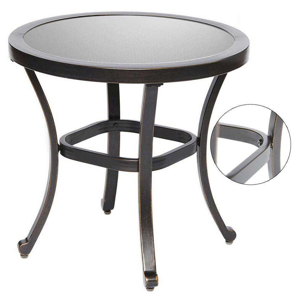 Solaura T1yj48c Solaura Furniture Outdoor Patio Table Steel Frame Black Wicker Coffee Table Round Side Table Tempered Glass Top