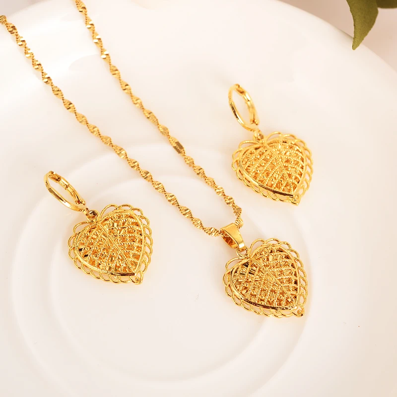 Fashion Gold Dubai Romantic Heart Love Pendant Necklace Earrings Sets Wedding Gold Png Jewelry Sets For Women Bridal Girl Gift Bridal Jewelry Sets Aliexpress