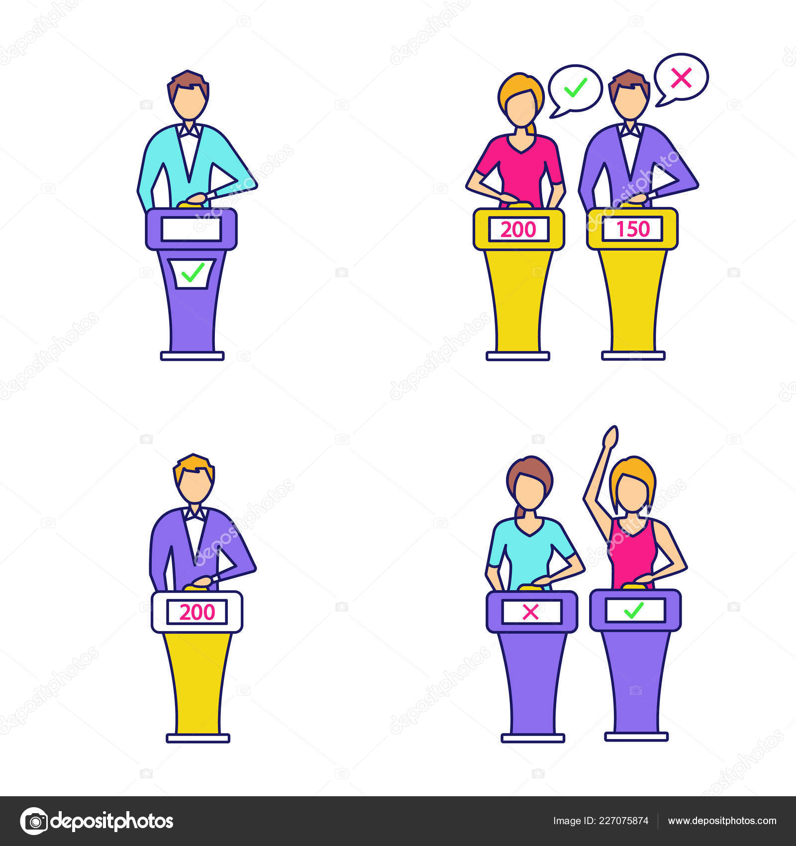 Quiz Show Game Concept Players Answering Questions Standing Royalty Free Cliparts Vectors And Stock Illustration Image 90302503