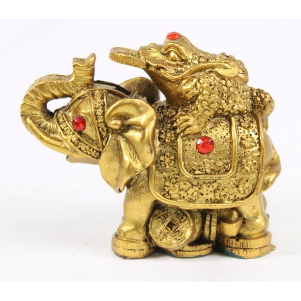 Feng Shui 3 Gold Money Frog On Elephant Figurine Wealth Figurine Gift Home Decor Walmart Com Walmart Com