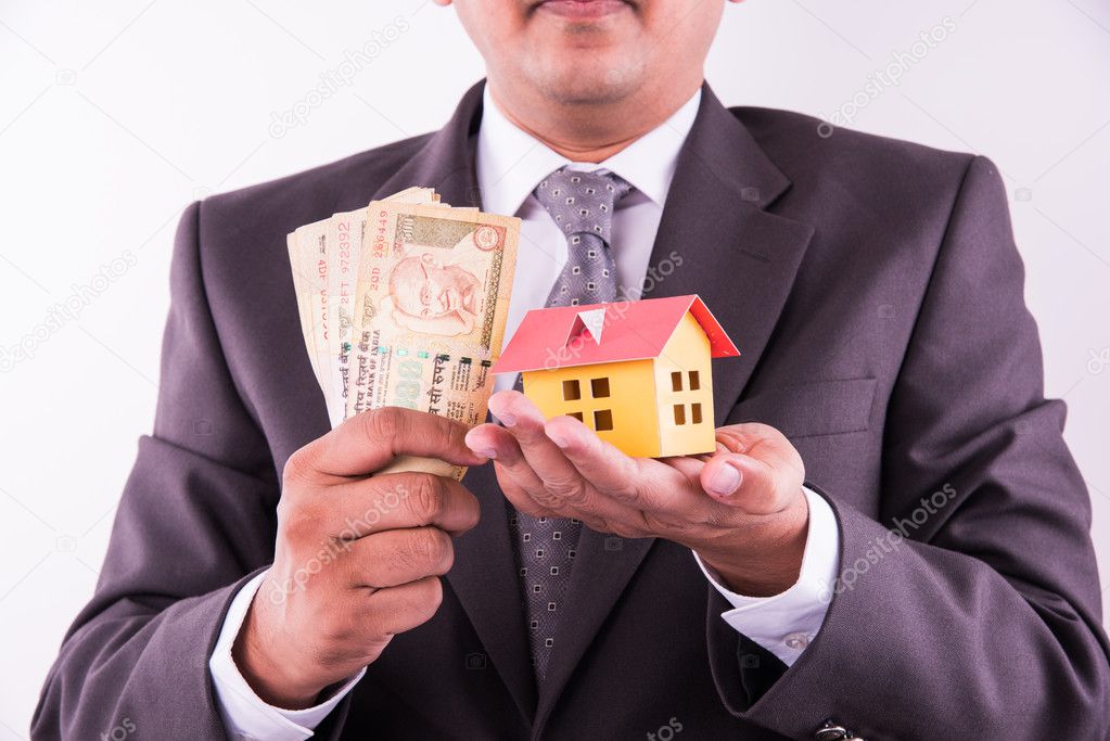 Buying Home Concept Indian Man Holding Indian Currency Notes In One Hand And Small Model House In Second Hand Closeup And Selective Focus Stock Photo C Stockimagefactory Com 122744848