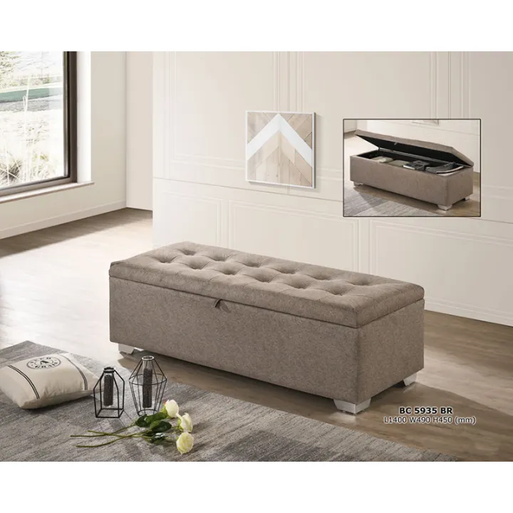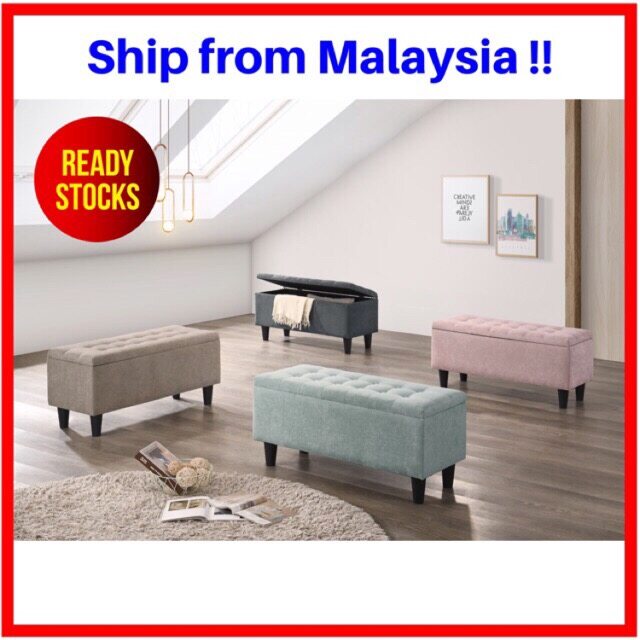 Buynsave Ready Stock Heavy Duty Long Storage Fabric Cushion Seat Bench Chair Foot Stool Box Large Ottoman Sofa Living Room High Quality Strong Stable Kerusi Bangku Panjang Berkusyen Hall Tamu Kukuh Kuat Modern