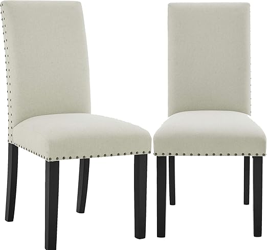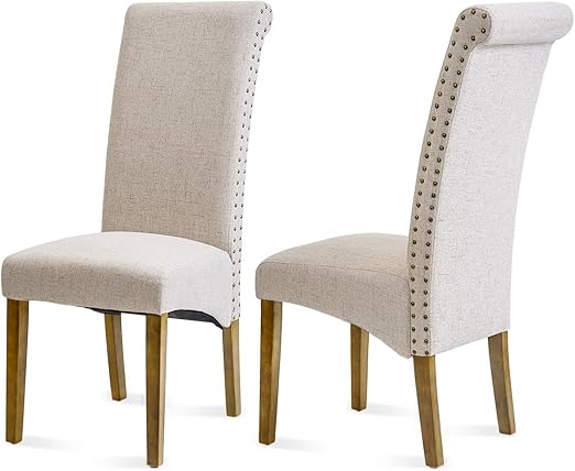 Amazon Com High Back Dining Chairs Set Of 2 Parsons Dining Chairs Armless Hight Chairs Upholstered Chairs Padding With Thick Foam Side Chairs With Solid Wood Legs Nailed Trim 2 Beige Chairs