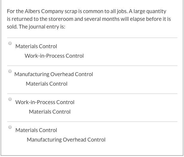 Solved Q17 If Scrap Common To All Jobs Is Returned To Chegg Com