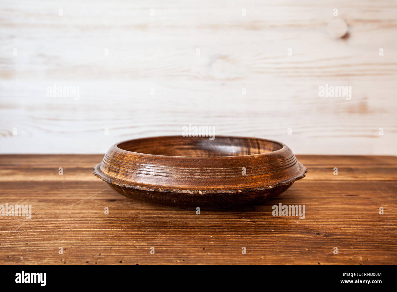 Front View Of Wooden Bowl On Rustic Table Wooden Background With Copy Space For Text Stock Photo Alamy