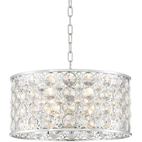 Possini Euro Design Chrome Drum Pendant Chandelier 19 3 4 Wide Modern Crystal 6 Light Fixture For Dining Room House Foyer Kitchen Target