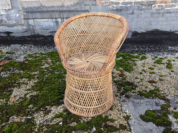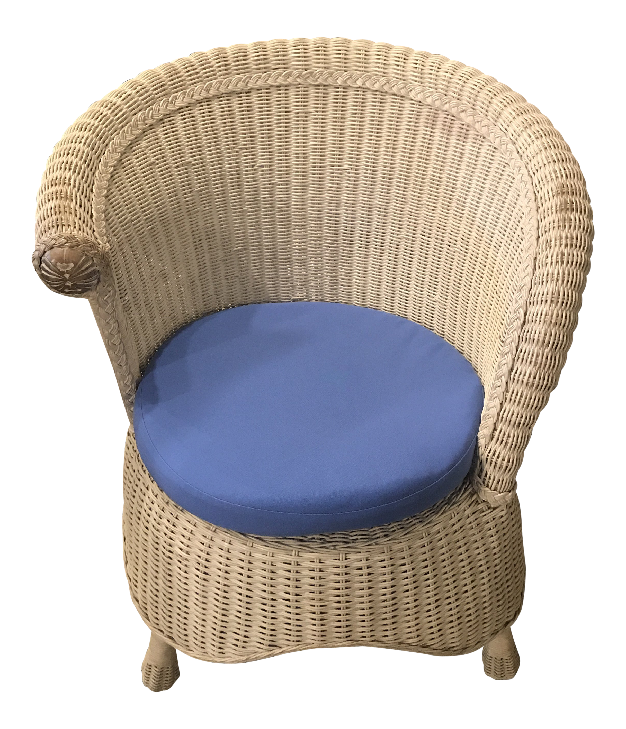 Round Brown Wicker Chair In Vintage Style Setting On Concrete Floor In White Room With Natural Light