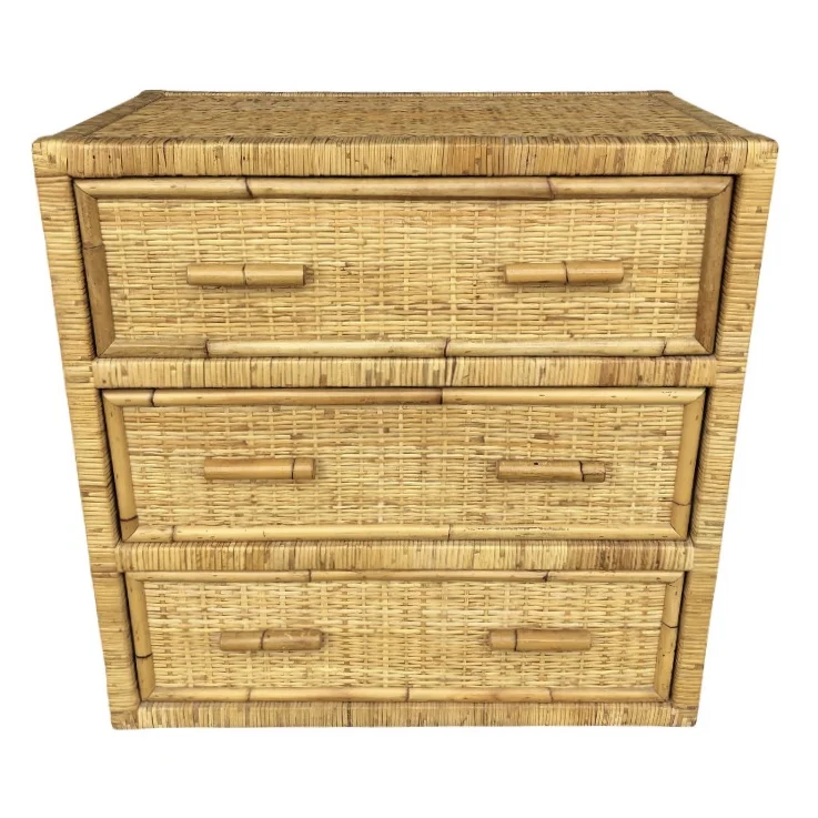 Vintage Campaign Style Wicker Chest Of Drawers Ebth