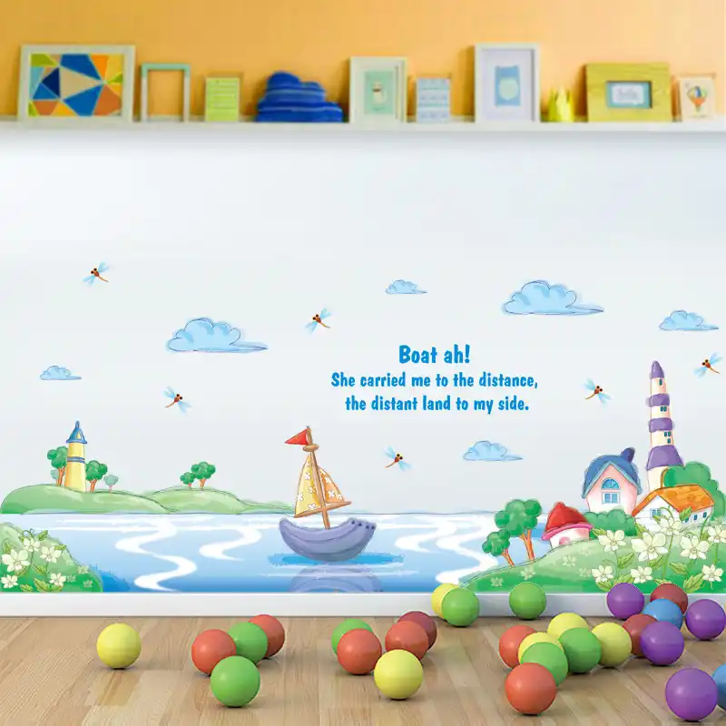 Lake Boat Cartoon Wall Stickers Beautiful Country View House Bedroom Living Room Corridor Baseboard Stickers Removable Skirting Aliexpress