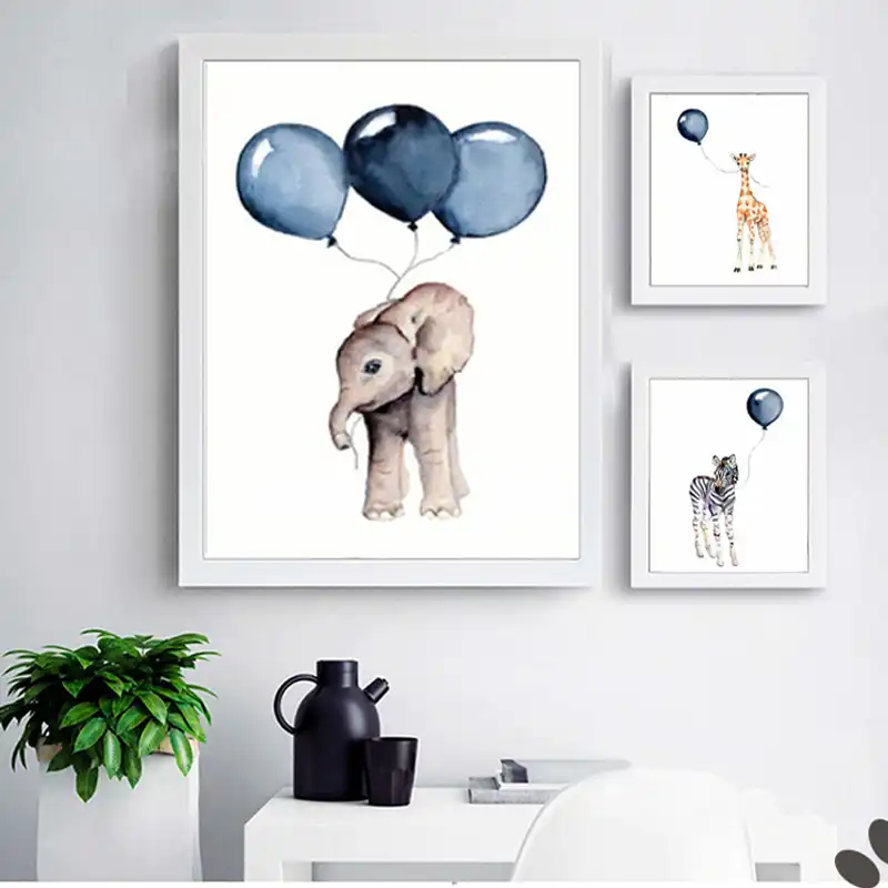 Watercolor Baby Room Decor Animal Elephant Nordic Poster Posters Zebra Wall Art Canvas Painting Prints Cartoon Picture Unframed Aliexpress