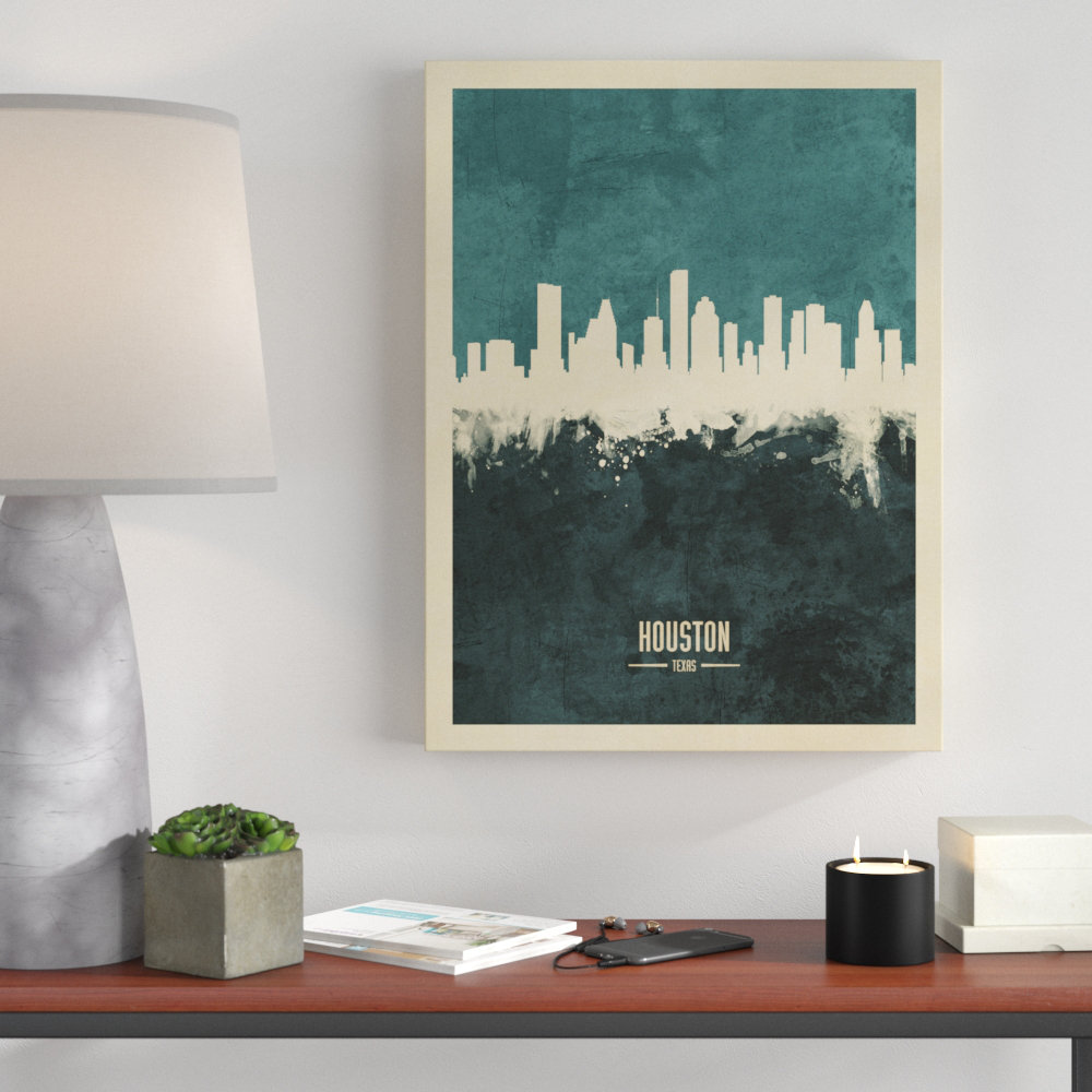 Trademark Art Houston Texas Skyline Wb 1 Framed Graphic Art On Canvas Wayfair