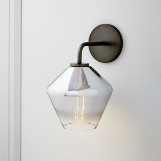 Gold Hexagon Mirror With Gray Wash Wood Bath Vanity Transitional Bathroom Benjamin Moore Chantilly Lace