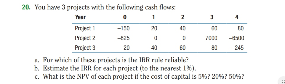 Solved You Have 3 Projects With The Following Cash Flows Chegg Com