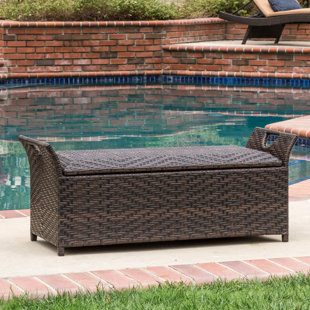 Amazon Com Multipurpose Outdoor Storage Bench With Wing Handles Made From Wicker In Multi Brown Color Tones Weight Capacity 250lbs Cushion Not Included Garden Outdoor