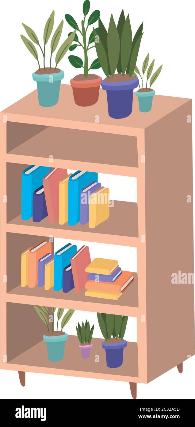 Wood Furniture With Books And Plants Inside Pots Design Home Room Decoration Interior Modern House Decor Living And Apartment Theme Vector Illustration Stock Vector Image Art Alamy